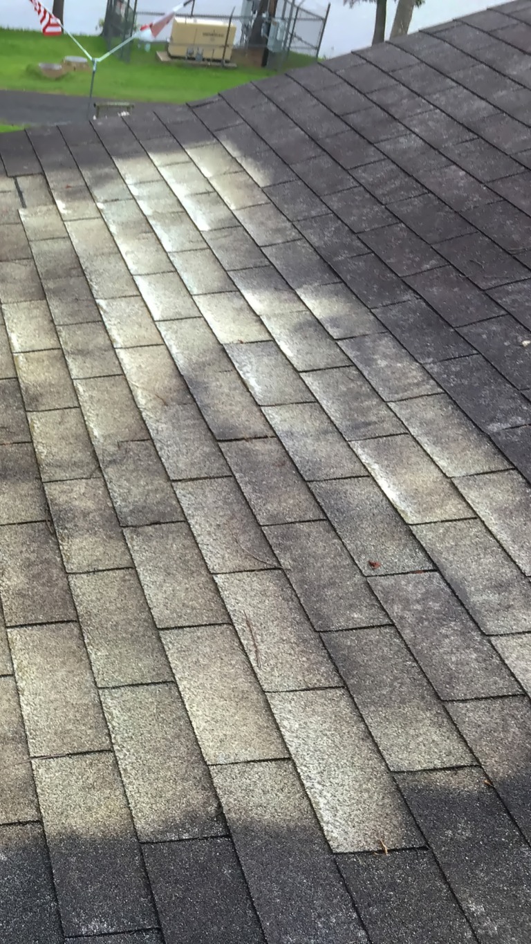Light pressure wash is self explanatory, the pressure used is low and it removes all organic growth (moss, lichen, algae etc) instantly, following the PW a biocide is applied every time to prevent any regrowth for years.